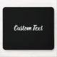 Este mouse preto tem texto em um script branco. O texto pode ser editado para mostrar uma mensagem personalizada ou excluído