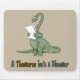 Ideia de presente humorística para voltar à escola, apresentando uma grande leitura de dinossauro verde. O texto diz: "Um dicionário de sinônimos não é um dinossauro".