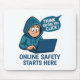 Promote safer browsing with a clear reminder to pause before clicking. A hooded figure symbolizes caution. Ideal for students, teachers, IT teams, and cybersecurity awareness.