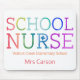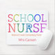 Tapete do rato personalizado da tipografia do arco-íris da enfermeira da escola para a mesa. Letras do arco-íris da textura da aguarela que soletram a ENFERMEIRA da ESCOLA. Personalizado com escola, nome ou a outra informação. Presente do divertimento para sua enfermeira favorita da escola. Tipografia colorida e moderna.