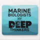 Um mouse pad de fundo de onda azul. Texto diz: Biólogos Marinhos são pensadores profundos