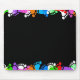 Pegadas coloridas em preto.