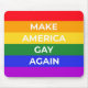 Este trabalho de arte apresenta um arco-íris e a frase "Torne a América Gay de novo".