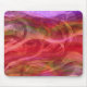 Partículas coloridas com ondas e corações pintados por abstrato em vermelho, violeta e verde.