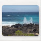 Imagem de ondas do oceano que se espalham na costa rochosa em um mouse pad.