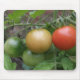 Este lindo bocal apresenta uma fotografia de um monte de tomate que amadurece, incluindo um tomate vermelho, laranja e verde de cereja numa linha, crescendo numa fábrica de tomate num jardim suburbano. A fotografia foi tirada usando macro fotografia para um resultado detalhado.
