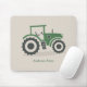 Uma cobertura de mouse bege claro com uma ilustração de um trator de fazenda verde e cinza no estilo de desenho animado e texto personalizável abaixo! Pode ser um presente perfeito para um agricultor ou um homem do campo!