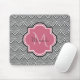 Um mousepad de padrão de escala arquitetado deco-art preto com um crachá quatrefoil cor-de-rosa-escuro que você pode personalizar adicionando facilmente seu próprio monograma e nome. Esta é parte da Coleção de Rosa de Monograma para Raptura de Negra.