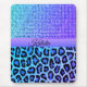 Uma impressão exótica, azul e verde, sobre leopardo, com uma fita roxa na qual você pode personalizá-la para torná-la única e com um padrão sombreado azul verde e roxo ombre e sombreado ao quadrado para contraste. Vírus de chic animal.