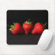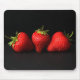 Três Morangos a Preto - Três morangos vermelhos numa linha horizontal fotografados contra um simples fundo preto. © Alan Harman Fotografia 2013. Todos os direitos reservados. www.alanharmanphotography.com 150518 mousepad