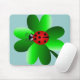 Este mousepad caracteriza um joaninha em um trevo de quatro folhas - ambos os símbolos da boa sorte