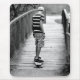Esta é uma legal fotografia branca e negra de um rapaz adolescente a atravessar uma ponte velha com o seu longo-bordo. Este é um exemplo perfeito de algo antigo e maravilhoso ainda desfrutado com algo novo e maravilhoso.