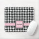 Padrão clássico de houndstooth preto e branco com uma placa de nome de rosa claro para o seu nome personalizado e monograma. Um presente de padrão bonito, feminino, moderno para mulheres que amam nome personalizado e presentes monográficos.