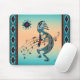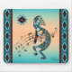 Este é um único "Um dos tipos" do Sudoeste de Mouse Kokopelli! Apresenta um Turquesa no Sudoeste de Kokopelli, tocando flauta e dançando sob o sol num fundo de turquesa e sunset laranja, cercado por uma borda sudoeste em Turquesa, Branco e Ferrugem...com notas musicais! Design De Arte Original Pelo Artista Kerry Miller.