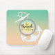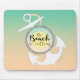 Um mouse pad para amantes de praia, este design náutico apresenta uma âncora e corda com moldura de portoletas e texto de caligrafia lembrando que a praia está chamando. As cores de fundo do gradiente de amolecer oscilam entre aqua e pêssego.