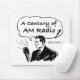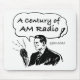 Um apresentador retro proclamando um século de transmissão de rádio AM, que começou com as primeiras estações AM em 1920 e continua até hoje na banda AM e com transmissões digitais de Internet. Tubos de vácuo e conjuntos de cristais são imagens da era do ouro dos sinais de rádio.