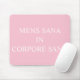 Um tapete motivacional do rato, com a citação latina "mens sana in corpore sano", que se traduz por "uma mente saudável num corpo saudável". A frase tem sua origem na Grécia antiga e foi mais tarde usada pelo poeta romano Juvenal. A interpretação mundial moderna do ditado centra-se na importância do equilíbrio e da harmonia entre a mente e o corpo. A fonte tem um sentimento clássico evocando inscrições públicas romanas. O design tipográfico apresenta texto branco nítido em um fundo cor-de-rosa. Este mouse inspiracional e na moda será uma adição impressionante ao seu espaço doméstico ou de trabalho.