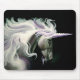 Perfil de um unicórnio branco com roxo no homem num pano de fundo de preto
