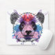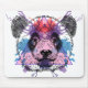 Características deste design uma cara da panda no quadro do triângulo com gota da tinta da aguarela.