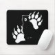 Ilustração de uma silhueta de urso pardo com pegadas no fundo. Mouse Pad para a vida selvagem e amantes de ursos.