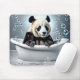 Urso panda bonito numa banheira branca com bolhas de sabão iridescentes