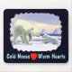 Um filhote de urso polar procura garantias da sua mãe no pacote de gelo ártico. O texto "Noses frias Corações quentes" e um coração vermelho também aparecem. Tudo num fundo estelar.