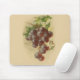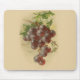 Uma ilustração de um grupo das uvas vermelhas roxas que penduram na videira com folhas, em um creme escuro ou em um fundo bege, de uma pintura do vintage pelo artista Catharina ou Catherine Klein, nascer 1861.