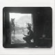 Um vaqueiro mostrado em silhueta que sentam-se em uma entrada com cavalos e uma cerca no fundo.
