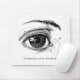 Ilustração médica antiga do olho humano com pestanas e glândulas lacrimogêneas.