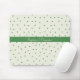 Um mousepad bonito com polkadots brancos e verdes na parte superior e na parte inferior. Há um espaço feito sob encomenda no centro para um nome ou uma mensagem. Aperfeiçoe para a casa ou o escritório.