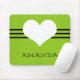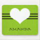 Doce e encantador Mousepad Coração Moderno com um fundo verde característico e um coração fofo e borda estriada. Este bonito e giro mouse irá adicionar estilo a qualquer espaço de trabalho. Personalize com o texto de sua escolha. Clique em "Personalizar" para encontrar opções adicionais de personalização.