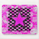 Esta Mouse Pad Emo apresenta um grafite rosa e uma imagem estelar gráfica da prancha de xadrez.