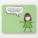 Bonita figura de palito com uma caneca de café verde, cabelo, colar de pérolas, e citação divertida em um fundo de bolinhas. A citação é editável.