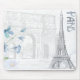 Vintage bonito Paris com a torre Eiffel e um grupo de flores azuis reconfortantes.