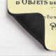 Na moda mousepad apresenta um cartão de visita de mercadores Vintage Paris, mostrando a tipografia da era. Ilustração preta sobre fundo creme em apuros