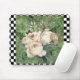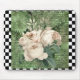 Belo jardim de safra inspirado em design, apresenta rosas brancas e ilustração botânica foliar sobre fundo efêmero verde-escuro aflita com borda de tabuleiro preto e branco.