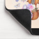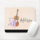 Mousepad personalizado com uma design feminina. Ilustrada com uma imagem de aquarela de um violino de madeira, alguns balés cor-de-rosa descansando contra ele e decorados com flores e borboletas. Colocado sobre um fundo cor-de-rosa cor de pêssego.