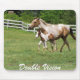 Esta égua bonita da pintura do Buckskin mostra fora seu bebê novo em uma excursão em torno do pasto.