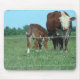 A fotografia do animal de fazenda da natureza, de uma vaca do hereford e de uma vitela dos cuidados, decora este mousepad