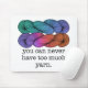 O seu tricô ou palito de crochê está fora de controle? Não, você nunca pode ter muito fio. Diga a todos o quanto você ama o seu esconderijo com este dito engraçado para tricotadores que diz, "você nunca pode ter muito fio" com uma ilustração de dois filamentos de fio de cor arco-íris.