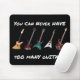 Esta caneca legal diz: "Você pode nunca ter guitarra demais" e caracteriza imagens de 5 guitarra elétricas diferentes e de guitarra baixas ao estilo da rocha, do grunge, do alternativo, do hard rock, do metal, ou do punk. Faz um grande presente para seu guitarrista, membro do grupo, ou melómano favorito.