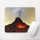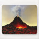 Um vulcão ativo lança lava vermelha quente e fumaça.