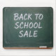 Um quadro verde exibe com destaque a mensagem "Voltar à Venda Escolar" escrita em giz branco