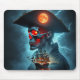 Este surpreendente design de mouse apresenta um pirata espectral com uma visagem esquelética e feroz, seus olhos brilhando de forma sombria vermelha. Ele veste um chapéu tricorno meteorizado sob uma lua vívida, vermelha de sangue que domina o céu tempestuoso e iluminado. Abaixo dele, um navio fantasmagórico veleja por águas escuras e estrangeiras, suas velas iluminadas por um brilho laranja de outro mundo. O design funde a areia com a aventureira, fazer-a como acessório atraente para qualquer mesa.