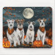 Libere o espírito assustador com esta design sombria do Dia das Bruxas apresentando um bando de cachorros sob um céu escuro e iluminado, cercado por morcegos voadores e abóboras brilhantes. Perfeito para aqueles que amam um toque de diversão terrível com seus amigos peludos!