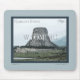 Uma pintura digital da Torre Devils e uma manada de bisontes pairando perto de um rio, com árvores espalhadas na base da torre geológica e colinas rolantes ao fundo. Esta não é uma cena real em Wyoming. Esta pintura foi feita com base em duas das minhas fotografias. Em letras brancas, no centro da pintura está "Wyoming". Nos cantos superiores está o lema estatal, "Estado da Igualdade", e o ano de Estado, "1890". A pintura tem uma borda azul escura. Imagem Copyright ©2023 Kimberly J Tilley.