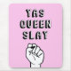 Esta trabalho de arte apresenta um poster de estilo de desenho animado com a citação "Yas Queen Slay" e o punho feminino crescido.