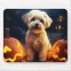 Mousepad Yorkipoo do Halloween Com Pumpkins Assustado