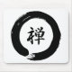 O enso do zen (círculo), símbolo do vazio e o universo. O kanji no centro lê simplesmente o "zen".