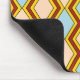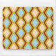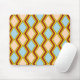 Zigzags brilhantes, vermelhos e amarelos encerram diamantes azuis-claros e de pêssego neste abstrato/design colorido de Richard H. Fay.